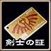 剣士の訓練所で手に入る「剣士の証」。上の階に行くには、これを階段手前の衛兵に見せればよい。