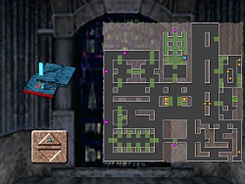 その中でも通目すべきが、キャラクターの位置を表示してくれる機能だ。点滅するピンクの光点がマップ上に現れたら、その場所に誰かがいるという事。 ただし、自分がすでに歩いていてマップが出来ている場所にしか表示されない。こまめにマップを開いて、今まで無人だった場所にキャラクター表示が点灯したら、まずそこへ行ってみよう。 また、プレイヤー位置は水色の三角で表示され、その鋭角の頂点が向いている方向が正面となる。方向は重要なので、確認する癖をつけよう。
