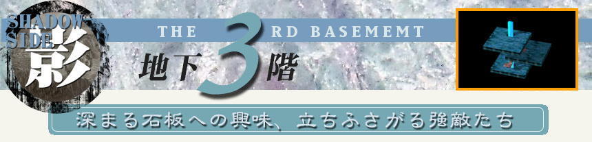 地下3階にはクラブがあちこちにトラップを仕掛けていた。なんとかその罠を潜り抜け、クラブを撃退するアストラル。その結果、手に入れる事の出来た銀の鍵を使い、ファブリスに拉致されそうになっていたシャロンを救うことにも成功する。自ら望んで止まなかった「力」を手に入れつつあるアストラル。