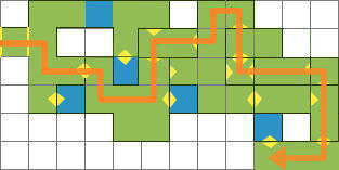 左の図のルートで迷路を抜けることが出来る。途中にある「金の塊」は、ダンジョンの先にあるボタンを押して迷路を破壊した後でもなくならない。まずは迷路を無事に抜けることを優先しよう。