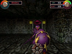 まずB3階の「DEFアップ薬」を売る闇商人から所持金で可能な限り購入(最低8回飲めるように)。そして、使用する装備はクロスボーとプラチナアーマー。レベルは25が必要。 さらに残金でハーブ+エフェクティブハーブをフル装備(15個)。可能であればフェアリードロップも購入しておく。これでやっと闘いに挑める。戦闘中は、敵のいた反対側の部屋のくぼみで、背中を壁につけた状態で闘う事。これで図体のデカい敵の必殺技は防げる。あとはただただ持久戦だ・・・。